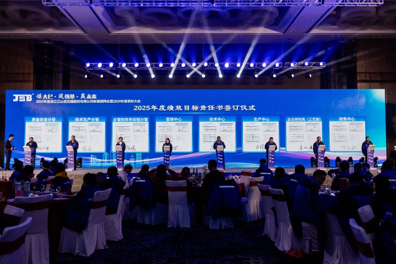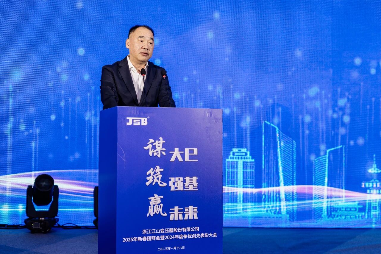 祥蛇启新程,团拜聚欢情。2025年1月18日,浙江江山变压器股份有限公司2025年“谋大巳·筑强基·赢未来”新春团拜会暨2024年度争优创先表彰大会圆满举行。集团领导、公司领导、全体员工齐聚一堂,共襄盛会。